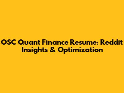 OSC Quant Finance Resume: Reddit Insights & Optimization