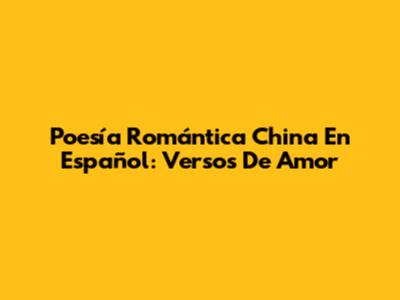 Poesía Romántica China En Español: Versos De Amor
