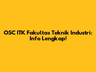 OSC ITK Fakultas Teknik Industri: Info Lengkap!