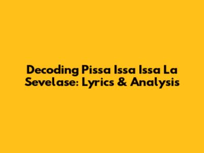 Decoding Pissa Issa Issa La Sevelase: Lyrics & Analysis