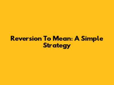 Reversion To Mean: A Simple Strategy