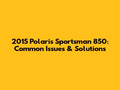 2015 Polaris Sportsman 850: Common Issues & Solutions