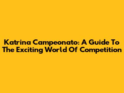 Katrina Campeonato: A Guide To The Exciting World Of Competition