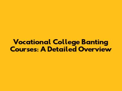 Vocational College Banting Courses: A Detailed Overview