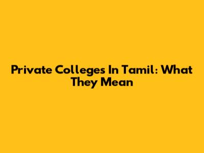Private Colleges In Tamil: What They Mean