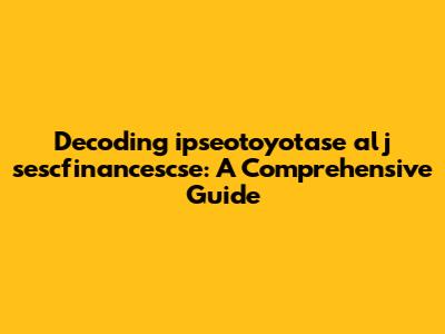 Let's dive into the fascinating world of "ipseotoyotase alj sescfinancescse." Okay, I know what you're thinking: what is that? Don't worry, you're not alone! This term might seem like a jumble of letters at first glance, but let's break it down and explore its potential meanings, contexts, and why you might be encountering it. We'll try to unpack this mystery piece by piece. First off, it's important to acknowledge that this string of characters doesn't immediately resemble a common word or phrase. It could be an acronym, a code, a username, or even a randomly generated sequence. Given its structure, let's consider a few possibilities. Perhaps it's an identifier used within a specific system, like a project code or a file name. These kinds of identifiers often combine elements to make them unique and easily searchable within a database or file structure. In this case, "ipseo," "toyota," "se," "alj," "sesc," "finances," and "cse" could all be fragments referencing different components or departments. Alternatively, it might be a concatenation of abbreviations. For example, "ALJ" could stand for Administrative Law Judge, "SESC" might refer to a Securities and Exchange Surveillance Commission (depending on the country), and "CSE" could denote a Computer Science and Engineering department or a stock exchange. Combining these abbreviations creates a unique, albeit cryptic, identifier. Another possibility is that it's a username or account identifier used on a specific platform. Usernames often need to be unique, leading to combinations of letters, numbers, and sometimes seemingly random sequences. If you encountered this term in a context where user accounts are involved, this could be a plausible explanation. To truly decode "ipseotoyotase alj sescfinancescse," we need more context. Where did you find this term? What were you doing when you encountered it? The more information you can provide, the better we can narrow down the possibilities and understand its actual meaning.