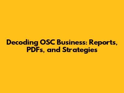 Hey guys! Let's dive into the fascinating world of OSC Business, a realm filled with strategic insights, crucial reports, and essential PDF documents. This guide will unravel the intricacies of OSC Business, helping you understand its key components and how to leverage them for success. Whether you're a seasoned entrepreneur or just starting, this guide has something for everyone. So, let's get started!
