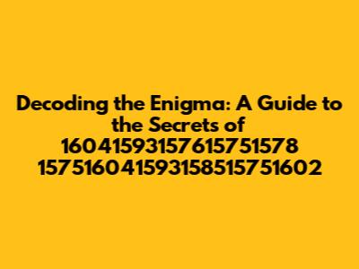 Hey everyone, let's dive into the mysterious world of 16041593157615751578 157516041593158515751602! This might seem like a jumble of numbers at first glance, but trust me, there's a fascinating story behind it. We're going to break down this numerical code and explore what it might represent, what it means, and why it's potentially important. This isn't just about memorizing numbers; it's about uncovering the secrets hidden within them. Whether you're a seasoned techie, a curious beginner, or just someone who loves a good puzzle, get ready to embark on a journey of discovery. The numbers themselves may appear complex, but the underlying concepts can be surprisingly easy to understand. So, grab your thinking caps, and let's get started. We'll start by taking a close look at the components of this numerical sequence and begin to unravel its meaning. This introduction is the first step toward understanding the broader context and significance of 16041593157615751578 157516041593158515751602.