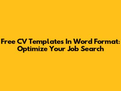 Free CV Templates In Word Format: Optimize Your Job Search