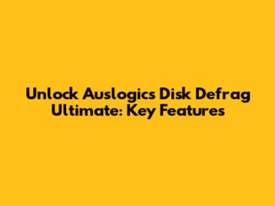 Unlock Auslogics Disk Defrag Ultimate: Key Features