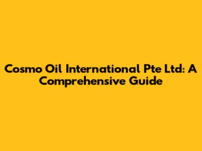 Cosmo Oil International Pte Ltd: A Comprehensive Guide