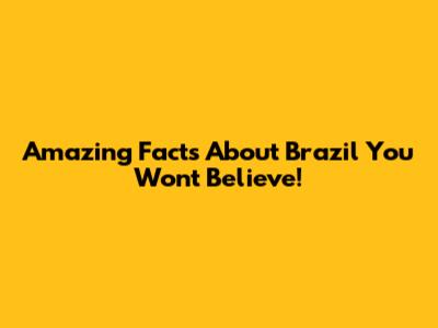 Amazing Facts About Brazil You Won't Believe!