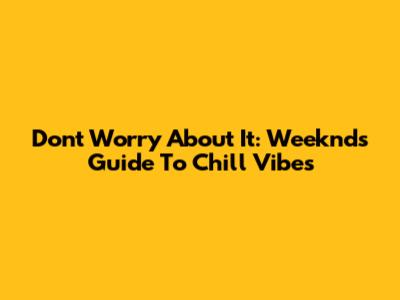 Don't Worry About It: Weeknd's Guide To Chill Vibes
