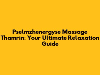 Pselmzhenergyse Massage Thamrin: Your Ultimate Relaxation Guide