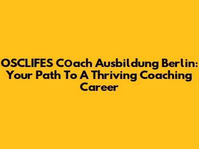 OSCLIFES Cоach Ausbildung Berlin: Your Path To A Thriving Coaching Career