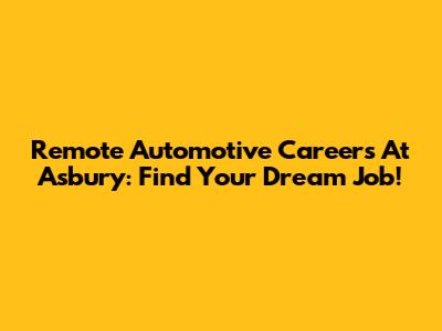 Remote Automotive Careers At Asbury: Find Your Dream Job!