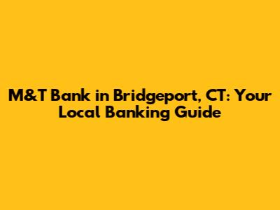 Hey guys! So, you're looking for an M&T Bank in Bridgeport, CT? Awesome! Bridgeport is a bustling city, and having a reliable bank is super important. This guide is your one-stop-shop for everything you need to know about M&T Bank in Bridgeport, from branch locations and services to understanding why they're a solid choice for your banking needs. We'll dive deep into what makes M&T Bank a popular option for residents and businesses alike, covering everything from account types to online banking features. Ready to get started? Let's go!