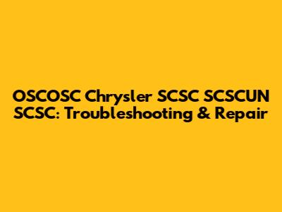 OSCOSC Chrysler SCSC SCSCUN SCSC: Troubleshooting & Repair