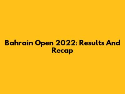 Bahrain Open 2022: Results And Recap