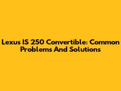 Lexus IS 250 Convertible: Common Problems And Solutions