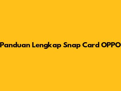 Panduan Lengkap Snap Card OPPO