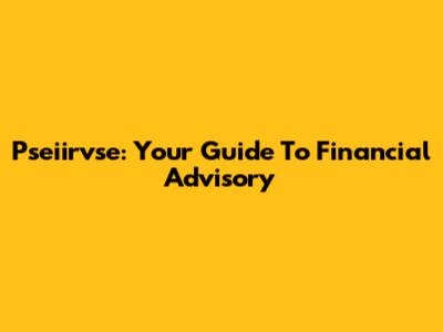 Pseiirvse: Your Guide To Financial Advisory