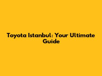 Toyota Istanbul: Your Ultimate Guide