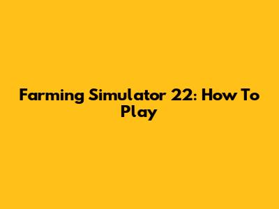 Farming Simulator 22: How To Play
