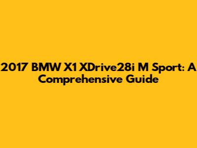 2017 BMW X1 XDrive28i M Sport: A Comprehensive Guide