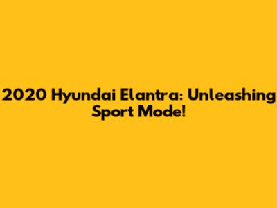 2020 Hyundai Elantra: Unleashing Sport Mode!
