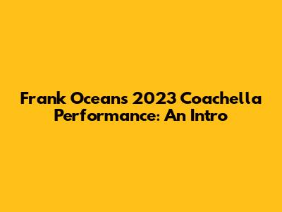 Frank Ocean's 2023 Coachella Performance: An Intro