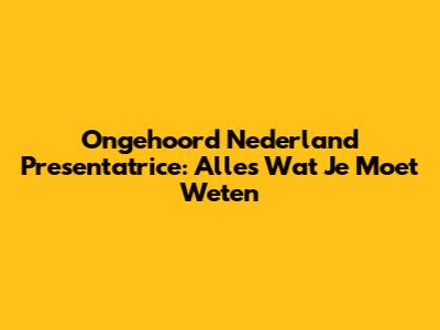 Ongehoord Nederland Presentatrice: Alles Wat Je Moet Weten