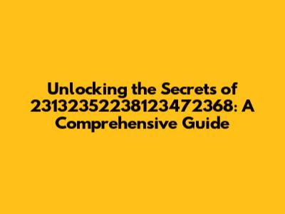 Alright, guys, let's dive into the fascinating world of 23132352238123472368! Now, I know what you're thinking: "What in the world is that?" Well, buckle up, because we're about to explore everything you need to know about this intriguing subject. Whether you're a seasoned pro or just starting out, this guide will provide you with a comprehensive overview, filled with tips, tricks, and insights to help you master 23132352238123472368. Let's get started!
