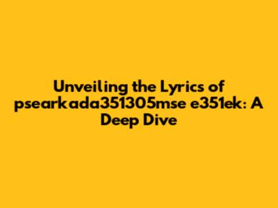 Hey music lovers! Ever stumbled upon a track that just grabbed you, leaving you craving to understand every single word? Well, today, we're diving deep into the lyrics of psearkada351305mse e351ek. For those of you who might be new to this artist, or just curious about the meaning behind the music, you're in the right place. We'll be dissecting the words, exploring potential meanings, and uncovering the emotional core of the song. Get ready to have your understanding of this musical gem enhanced. Let's get started!