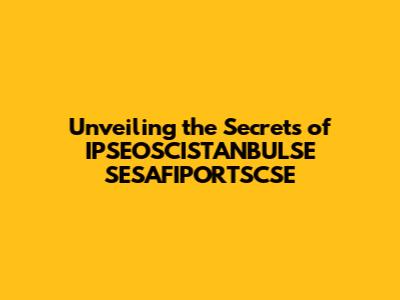 The Significance of IPSEOSCISTANBULSE SESAFIPORTSCSE: Why Should You Care?