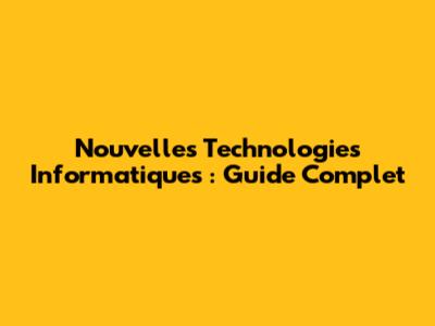 Nouvelles Technologies Informatiques : Guide Complet