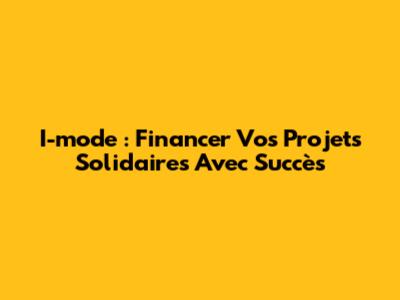 I-mode : Financer Vos Projets Solidaires Avec Succès